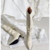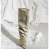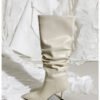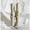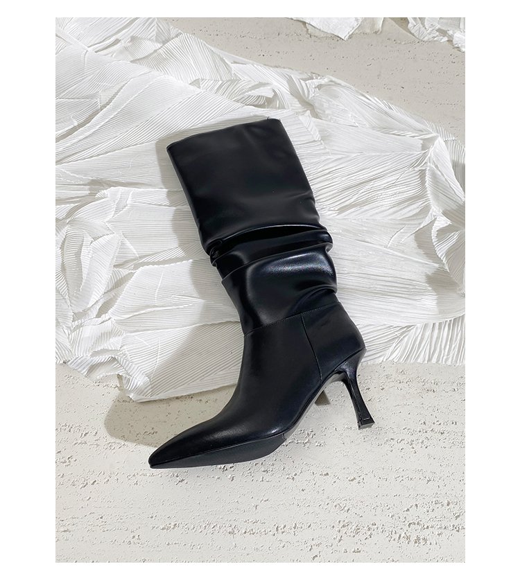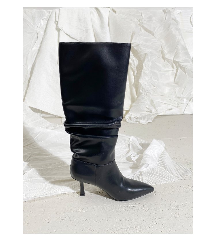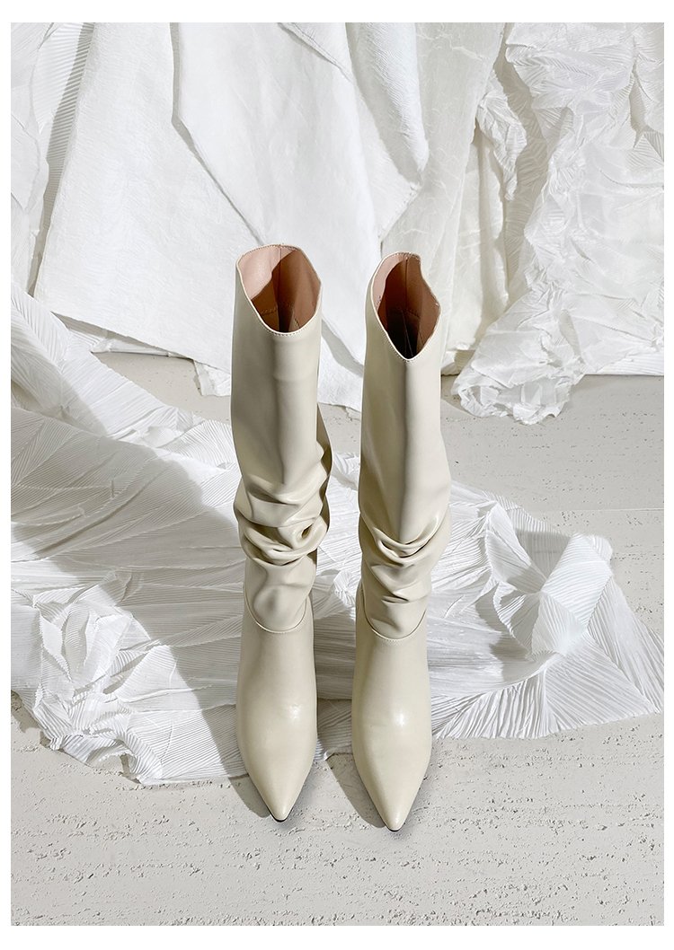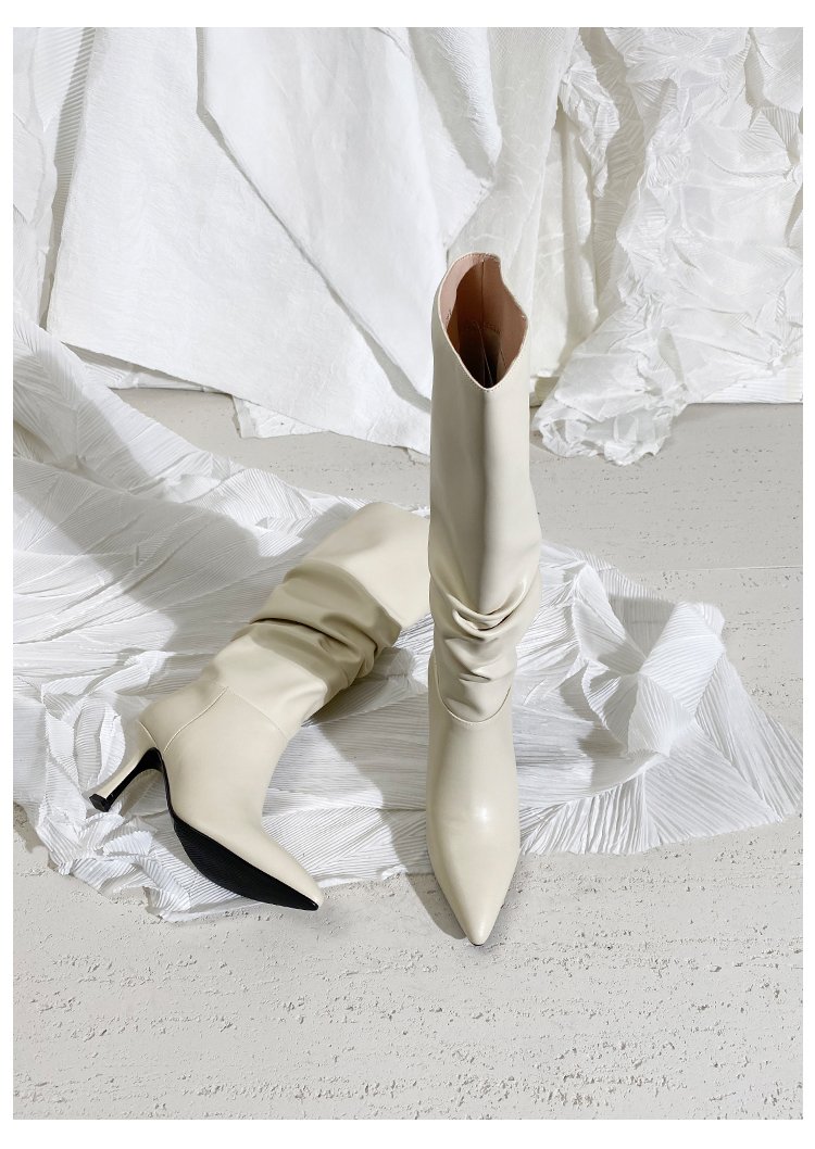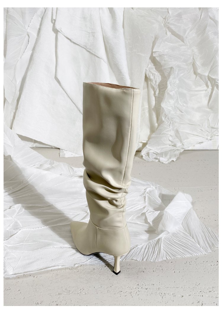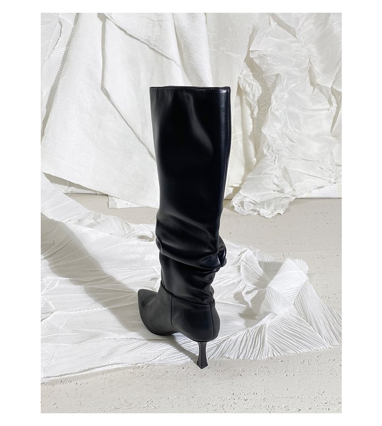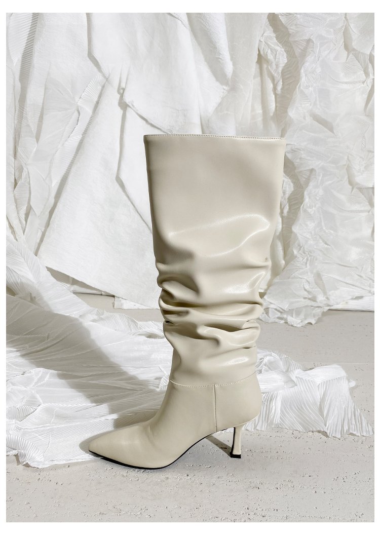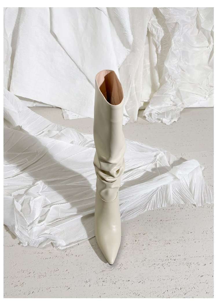 Ruched Leather knee high heeled Pointy-Toe Boots #S002