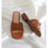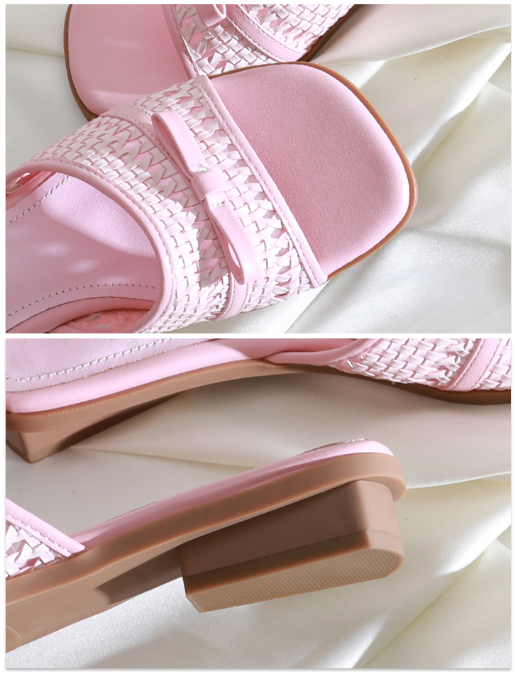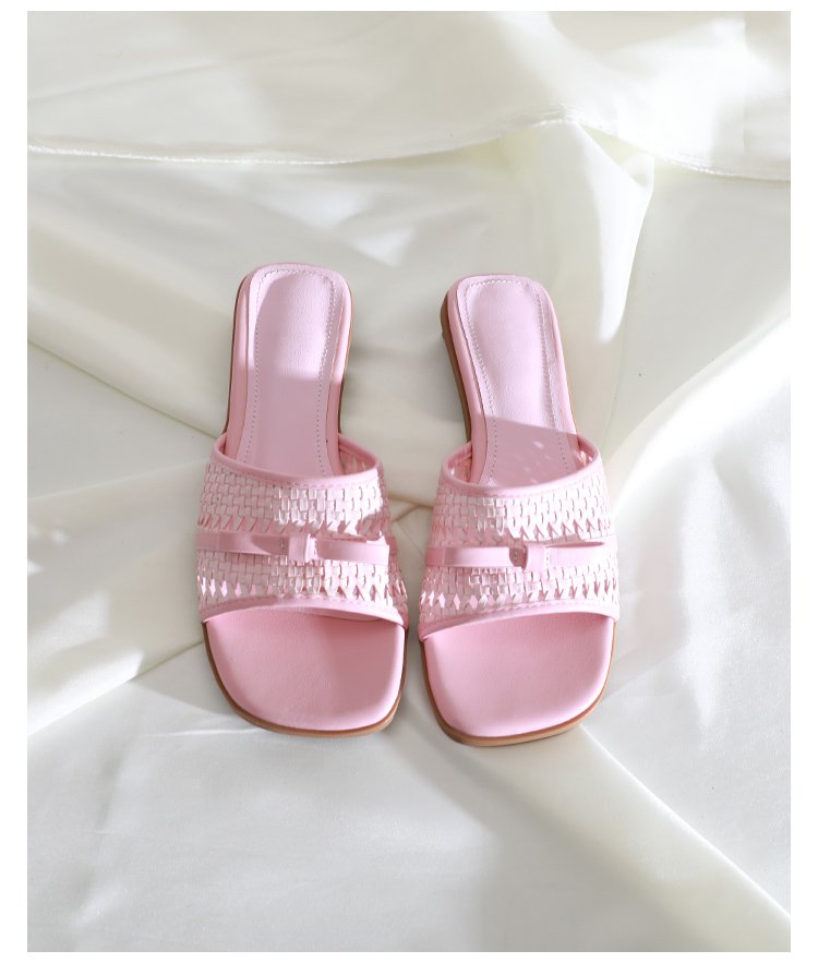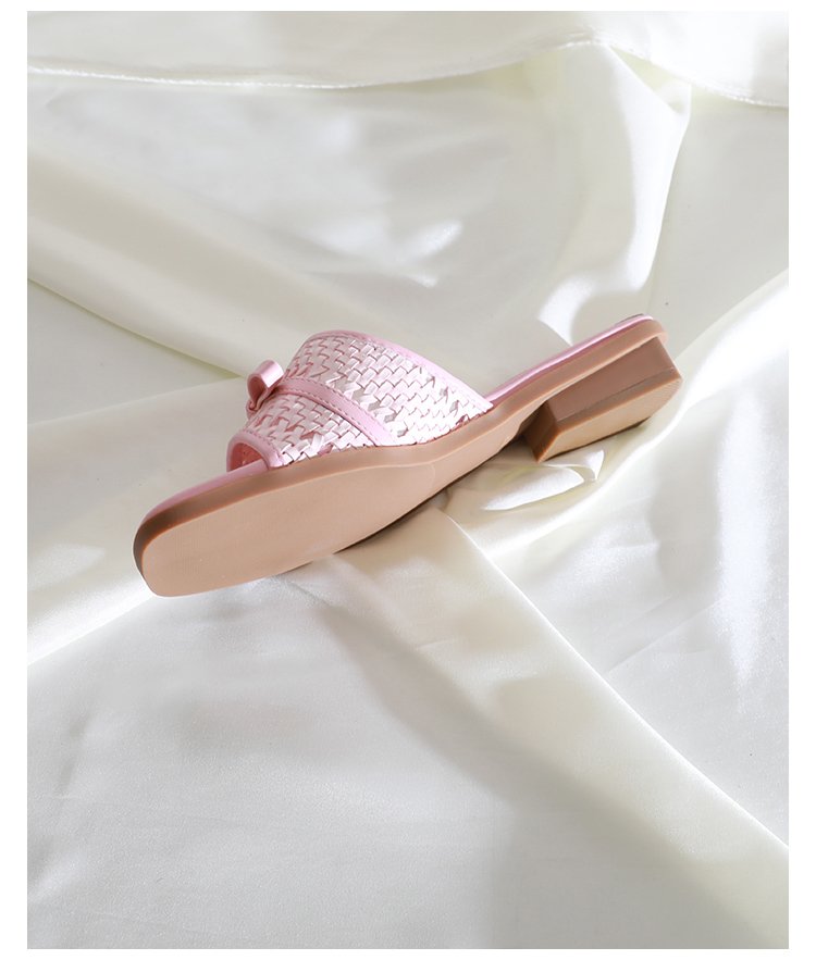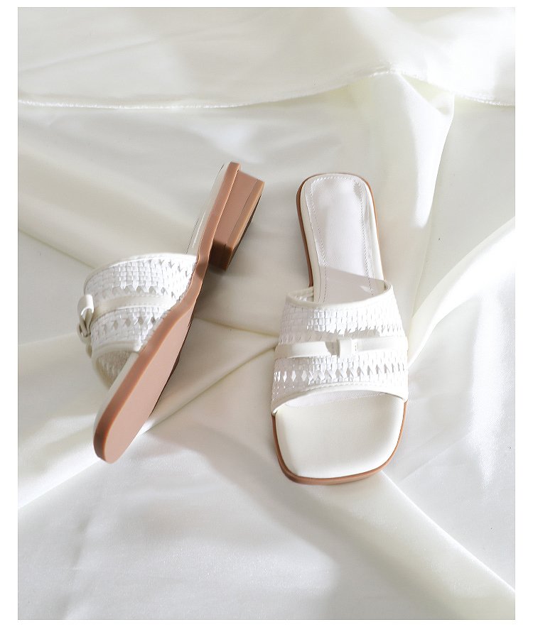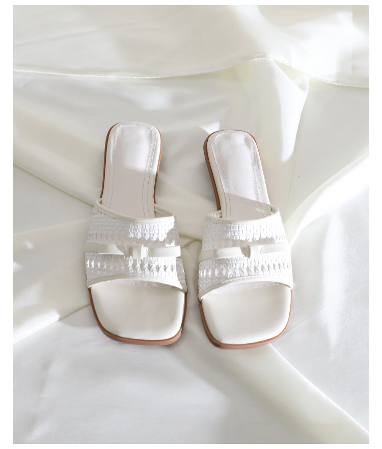 Woven Square-Toe Slide Sandals #S001